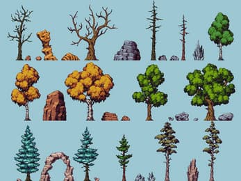 Trees & Rocks - Natural Decorations Pixelart