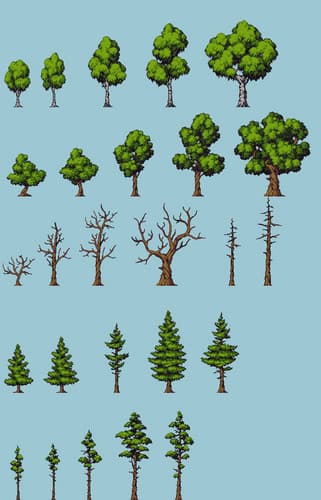 My other packs Trees & Rocks - Natural Decorations Pixelart An asset pack in the same series as: Fantasy Forest - Pixel Art TilesetFantasy Jungle - Pixel Art TilesetFantasy Caves - Pixel Art TilesetFantasy Winter - Pixel Art TilesetFoggy Cliffs - Fantasy Pixel Art TilesetCastle Dungeon - Fantasy Pixel-Art TilesetDead Desert - Fantasy Pixel-Art TilesetLava Caves - Fantasy Pixel Art TilesetFantasy Platformer PropsFantasy Enemy CreaturesTrees & Rocks - Natural Decorations Pixelart 48 sprites for your level decoration needs! Every sprite is recoloured in 5 different colour schemes! Included also the 7 trees from Fantasy forest pack! Full Details - 26 total tree sprites11 Bigger trees in 160x160px canvas15 smaller trees in 96x128px canvas22 total rock sprites12 small rocks in 32x32px canvas6 medium rocks in 64x64px canvas4 big rocks in 96x96px canvas LICENCE: This asset pack can be used in both free and commercial projects. You can modify it to suit your own needs. Credit is not necessary, but highly appreciated. You may not redistribute or resell the assets on their own, that includes NFTs, just images, or asset compilations. The assets can't be used in AI creations. Follow me on Twitter for updates on more Asset Packs - https://twitter.com/Namatnieks And if you like the pack remember to Rate it! :)