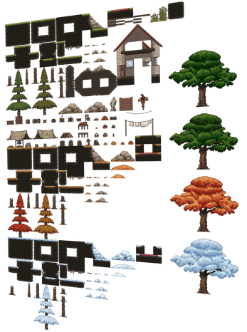 Welcome, fellow traveler! Are you searching for expertly designed Pixel Art assets for your Sidescroll/Platformer project? You've come to the right place. This asset pack features grass and rock tiles, an array of decorations, customizable trees, beautifully crafted backgrounds and a male and female character. (Some of the characters you see on the images are from my other Character packs) This Pack Contains: Male and Female Character Fully animated (Idle, walk, run, jump, fall, attack/use item, DeathForrest/Tiles 32x32 ( Winter and Autumn versions)Animated Water Tiles 32x32Animated WaterfallCustomisable TreesLarge TreesHouse Tiles 32x32Background Variations for seasonsBlizzard Layer (30 frames) HP barSky Decorations (Clouds, Sun...)Large TentAnimated Portal (10 frames)Animated Furnace and SawmillOresAnimated Small Boat (10 frames)Pine Forest SpritesAND MORE Characters Preview: If you're looking to personalize your character further, be sure to check my FREE PIXEL ART CHARACTERS PACK HERE Tiles Preview: Customisable house and tree tiles Background Preview: Has 5 transparent layers that can be used to create a parallax effect LICENSE: âï¸ You are allowed to use the assets for: Commercial and non-commercial video games and projects Modify them as needed and display them on designated websites â However, the following uses are prohibited: Reselling, repackaging, or redistributing the assets Using them for AI training or NFT projects (Crypto, Blockchain, web3) Incorporating them into "game development tools" or printed materials NOTE This asset will be available to you at no cost forever. Your feedback in the form of a fair RATING is crucial for this project's success, and it is the only "payment" requested from you. Twitter: https://twitter.com/GandaIfHardcore Other Assets: