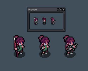 Free Demo version: ⢠Idle ⢠Walk ⢠Jump ⢠Dash ⢠Death Premium version: Idle Walk NormalWhile aiming, shooting and reloading Run NormalWhile shooting JumpDashAttackWhit spear Shooting whit gun Reloading gun Death Note: All animations contain normal, spear and gun except in the free demo version which contains only the normal. All animations contain 8 frames in 6 directions ( some contain 8 directions such as spear attack and shooting ). For Free Demo and Premium version â Assets can be used both in free and commercial games. â â Assets can be modified freely to fit the needs of your game. â â You may not redistribute it or resell it. â â Credit is not required for Free and Premium version, but much appreciated a lot! â you can follow me on twitter to see future updates or new packs
