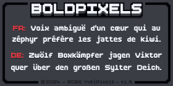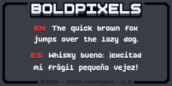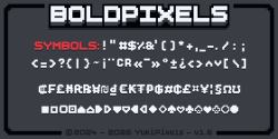 🕹️ A Charming Font for Your Projects I realized I needed a 16 Pixels Font that could fit perfectly into my games. Since I couldn't find it, I made one myself. Whether you are a solo dev, a designer or a hobbyist, I hope BoldPixels gives your project that retro vibe it deserves! 🛠️ Technical Details Font Size: Display at multiples of 16 pixels (16, 32, 48, 64, 80, 96, etc...) To keep a pixel perfect render Character Set: Includes Basic Latin+, Latin A/B/C, IPA+ Extension, Cyrillic+, Currency, Punctuation and Diacritics Language: 100+ languages are supported! Including French, Spanish, German, Russian and more File Formats: Available in TrueType (.TTF), .OTF, .PNG, .WOFF, .SVG and more are included in the Zip file 📃 License BoldPixels is released under the Creative Commons Attribution Share Alike 4.0 License This font is free for both personal and commercial useBut you can tip me to support my work and future updates ♥ 💭 Feedback & More Stay updated on my Twitter or find all my links in here Check out my Icons Pack to match the retro vibe of this font! You liked it? Leave a rating, it helps creators find this ressource Found a problem or made something cool with BoldPixels?I would love to see it! Please share in ↓ the comments below ↓