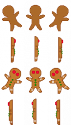 Description: Gingerbread man sprite created for Stendhal. Details: Orientation: orthogonal N/E/S/W S/W/E/N Dimensions: 48x64 Animation: idle (center frames) walking: 12 frames (3 per direction) Animated preview @ 150ms delay. PNG images optimized with indexed color (smaller files). GIMP sources (.xcf) use RGB color. Licensing: OpenGameArt.org Attribution (OGA BY) version 3.0 or newer Creative Commons Attribution (CC BY) version 3.0 or newer Canonical link: https://opengameart.org/node/140789