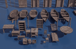 Modular asset of wooden docks, build it on a lake, swamp or a beach, it should fit right in. every modular piece is aligned to the grid, props and fences might need some adjusting off the grid. object count 176 1. tris: 15856 ; Polygons: 7602 ; Verts: 10852 2. uv map fits the texture and trimsheet 3. 15 materials 4. no rig 5. no animation 6. set up in godot and blender come check on my progress on twitter https://twitter.com/TheLoafbrr and mastodon https://mastodon.gamedev.place/@loafbrr or support by giving a tip on https://loafbrr.itch.io/ or https://ko-fi.com/loafbrrrrrr001 any amount will be appreciated download and unpack models are in fbx/gltf folder and the texture is in the texture folder, extract the contents of the godot zip file to " res://Assets/ " folder to avoid dependency issues