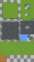 Simple pixel art top down tileset: Contents: two types of grass two types of road one static frame water one rock two bushes Provided in two formats: aseprite source file png sprite sheet Size: 24x24px Check it on itch https://dustdfg.itch.io/pixel-art-top-down-tileset