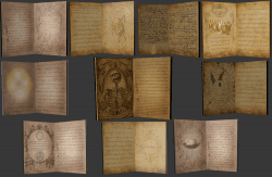 Zip contain blend file with a closed (66 triangles) and an animated open (78 triangles) book models. There are a total of 26 textures for a total of 10 types of spell books, some of them have two variants for cover. Half of them for the closed book and the other half for the open one. The closed book textures are at 1024 res while the open one are at 2048 res. The only textures that I used that were not in public domain or created by me are the arcane circles (used in some of the textures) created by redheadstock and according to him you may use them commercially if you can feasibly mention him in the credits. Donations appreciated and they will be used to improve my 3D through new software or extra time spent on the models. They can be done using this paypal link.